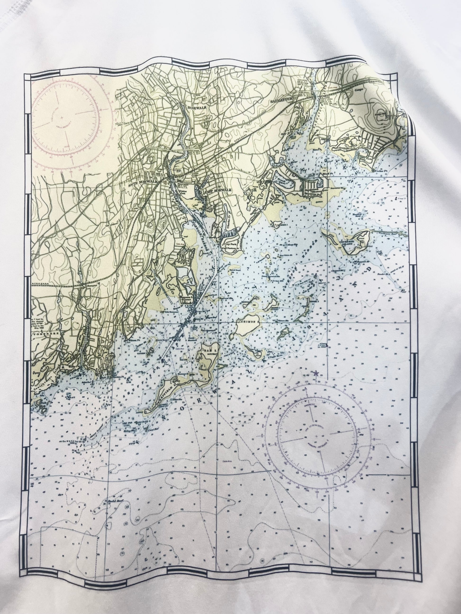 Norwalk Unisex Rash Guard. UPF 50 Sports Shirt, Long Sleeved. Detailed Chart of the Norwalk Islands on the Back.